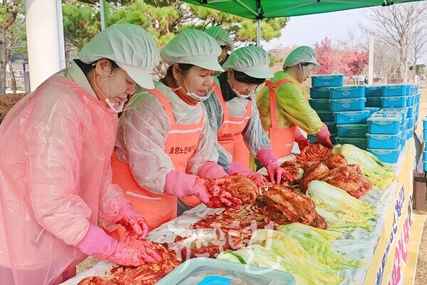 행사 첫날인 21일에는 효령노인복지타운 야외 잔디광장에서 본부장을 포함한 직원 20여 명이 김장 김치를 담그고 포장 작업을 했다.