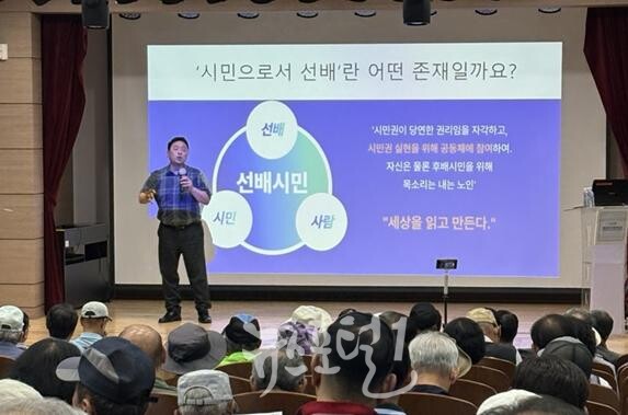 [한국시민기자협회=기범석 기자] 효령노인복지타운(본부장 정경남)은 지난 7월 2일(화), 광주 인재평생교육진흥원(원장 이춘문)과 협력하여 고령자 120여 명이 참석한 가운데 ‘노인학 릴레이 특강’ 제1차 강의를 했다.