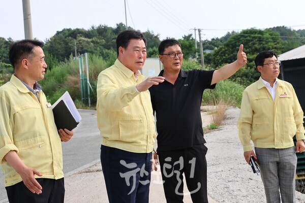 이날 김산 군수는 한우 및 육계 사육 농가를 방문해 환풍기와 냉방시설 설치 현황을 점검하고, 폭염 피해를 최소화하기 위한 사양 관리 방법과 농가의 건의 사항을 직접 살폈다.