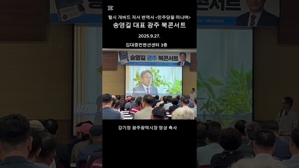 송영길 대표 번역서 “민주당을 떠나며” 광주 북콘서트. 송 대표 인사말, 강기정 시장 축하 영상, 토크콘서트
