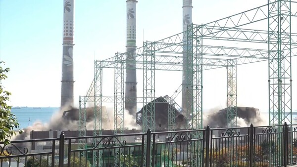 [울산=박일우기자] 울산 화력발전소 붕괴 현장에서 4호기와 5호기 보일러 타워가 오늘(11일) 오전 늦게 전격 발파됐다.